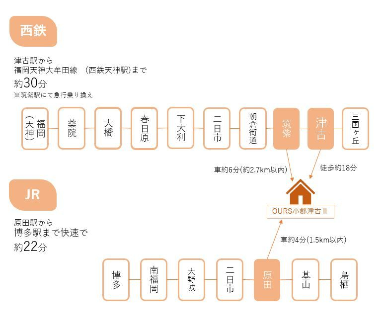 西鉄大牟田 津古 徒歩 約1398m 徒歩 約18分 |